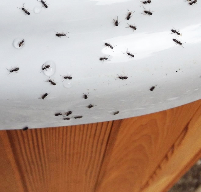 we are purchasing a hot tub and have been preparing the area. it’s a flat concrete pad and we have stone pavers sand set on top of the pad. I removed the section of pavers to expose the concrete pad for the future home of the hot tub. there are a million bajillion sugar ants! I am concerned they are going to set up home in the tub once it comes. Can sugar ants cause damage to a hot tub? it seems like they are going to go nuts to get in it all warm and snug and wet…especially in the winter. should I not buy the tub? is there a way to prevent them getting in? if they do get in, will they gum up the hot tub innards? The hot tub salesguy does not seem to be concerned but I’m not sure how it’s not going to be a problem.