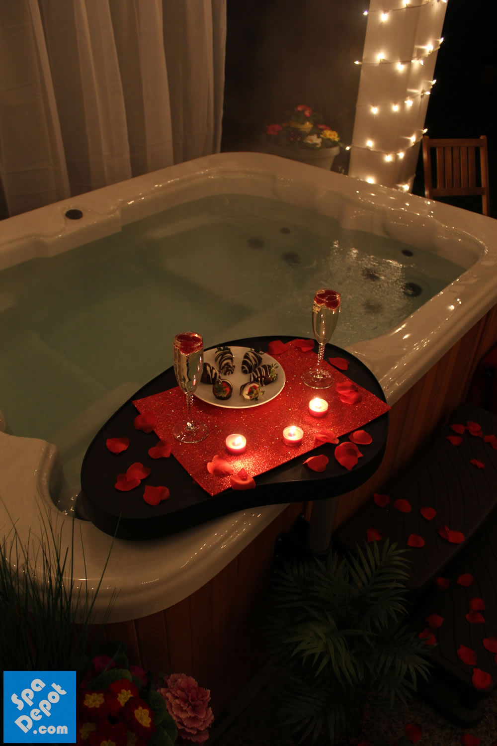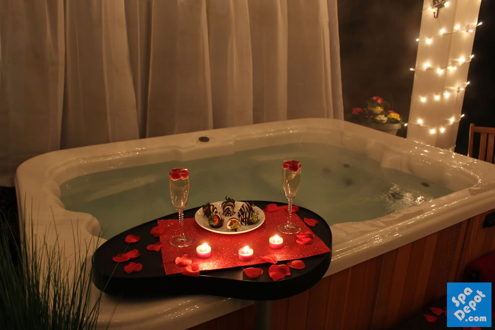 Finish up the evening by taking a relaxing soak in your hot tub or draw a hot bubble bath! Prepare the area ahead of time by sprinkling rose petals and lighting candles.